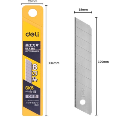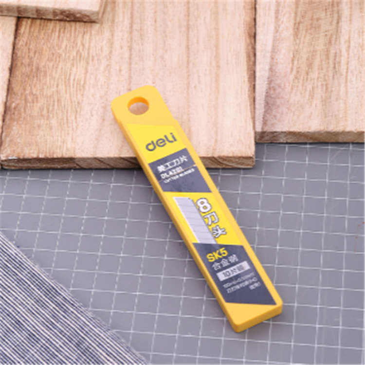 得力美工刀片刀體采用SK5合金鋼鍛造,韌性好、更鋒利。