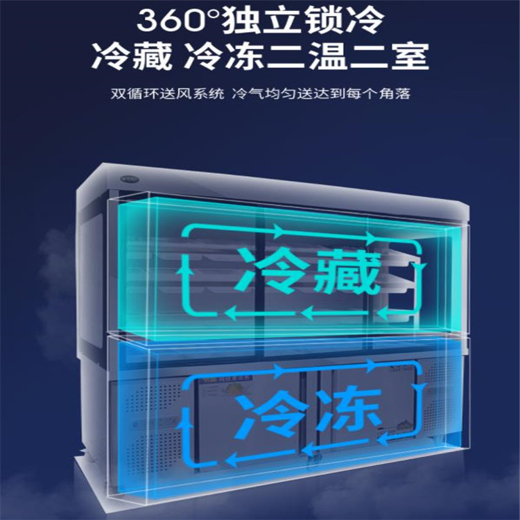 歐馳寶麻辣燙柜果蔬柜360°獨立鎖冷,冷藏冷凍二溫二室,雙循環(huán)送風(fēng)系統(tǒng),冷氣均勻送達(dá)每個角落