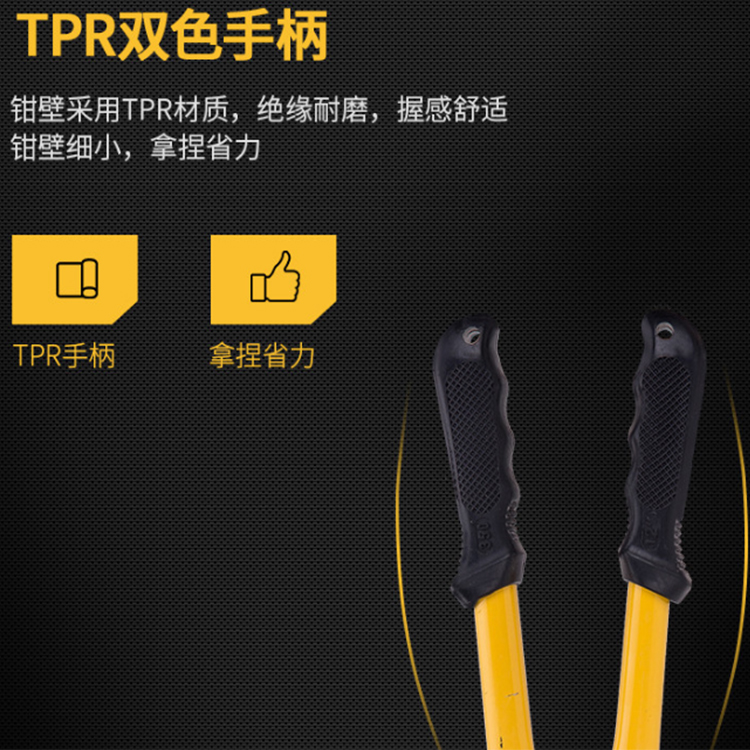 鉗頭采用Cr-Mo合金鋼鍛造,鏡面拋光,刃口高頻淬火,硬度達到55-62HRC。