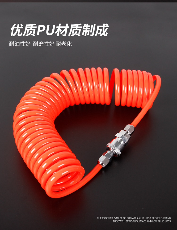 彈簧軟管由PU材質制成,耐油性和耐磨性好