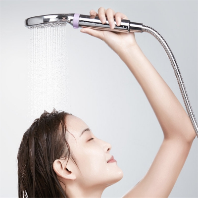 三功能手握花灑頭明“凈”視界,快速除垢TPR自潔水咀,輕按軟膠,