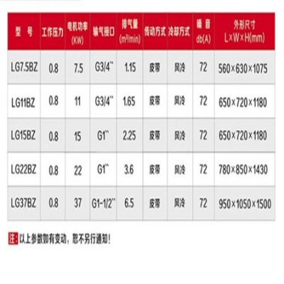 紅五環(huán)LGBZ系列固定式螺桿空氣壓縮機(jī),參數(shù)表