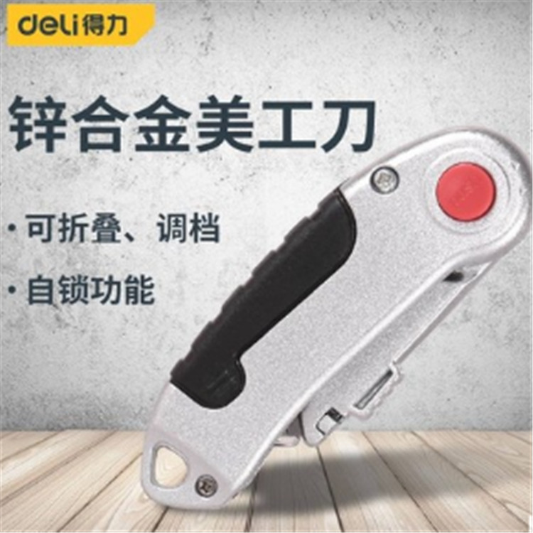 得力鋅合金美工刀自鎖功能,伸縮自如,使用方便。