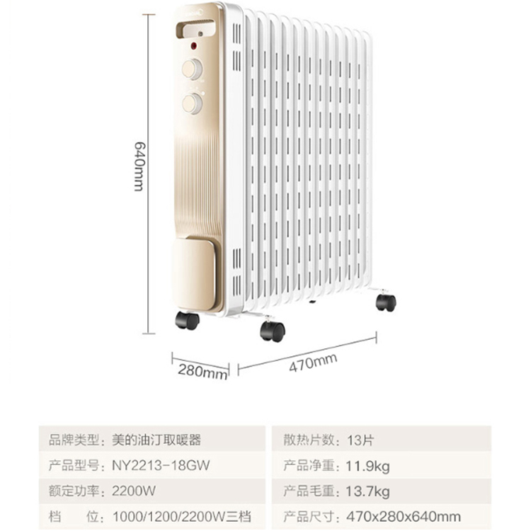 美的(Midea)取暖器/電暖器/電暖氣片家用 節(jié)能整屋供暖 13片升級電熱油汀
