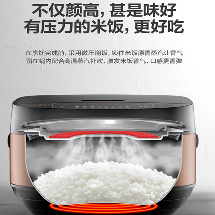 美的家用電飯煲采用微壓燜飯,鎖住米飯原香蒸汽。