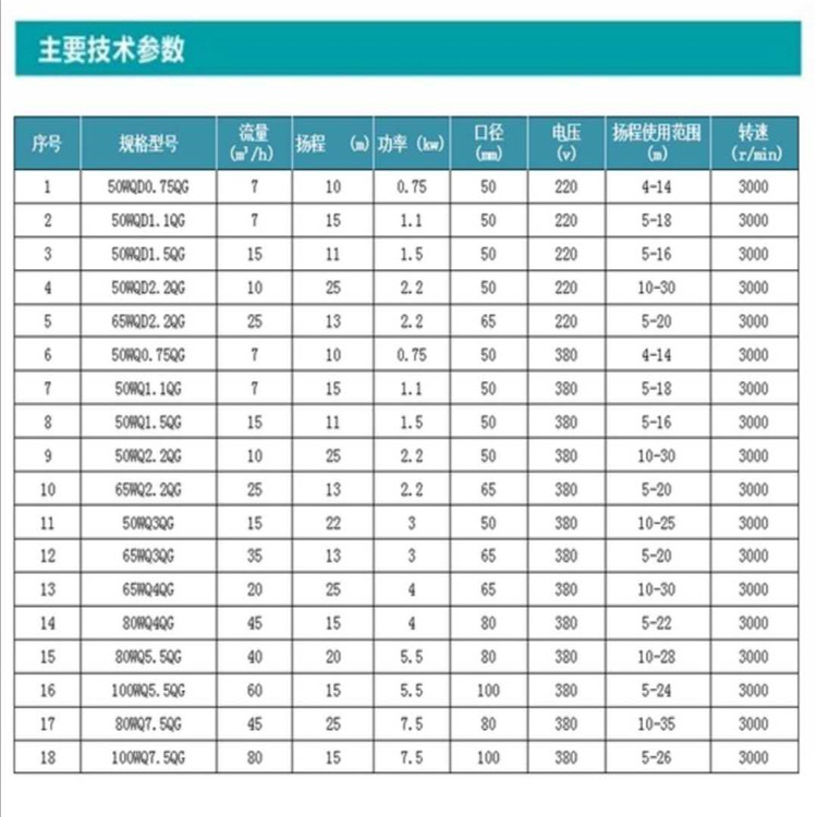 新界切割式污水泵參數(shù)圖