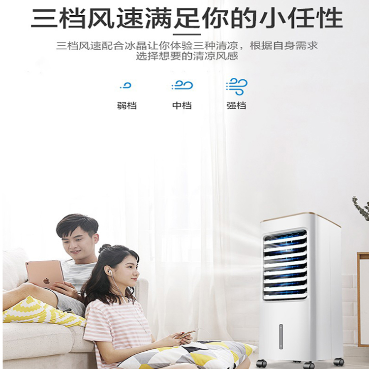 美的家用空調扇三檔風速配合冰晶讓你體驗三種清涼。