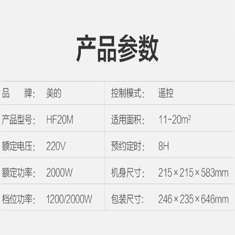 美的(Midea)取暖器/電暖器/電暖氣家用 數碼屏顯 即開即熱 遙控暖風機HF20M