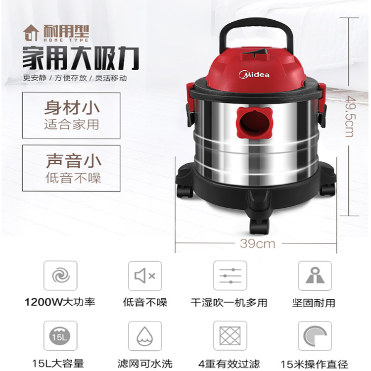 美的(Midea)吸塵器T3-L151E1干濕吹三用大功率商用家用車用桶式吸塵器