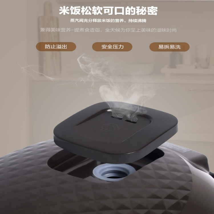 美的(Midea)電飯煲持續沸騰,蒸汽閥充分釋放米飯的營養。