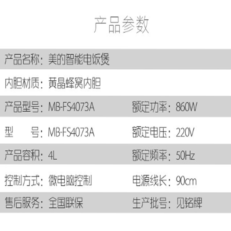 美的(Midea)電飯煲采用黃晶內膽,大火力精煮細燜。