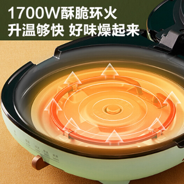 美的(Midea)電餅鐺浮動加大烤盤,厚餅快速熟透。
