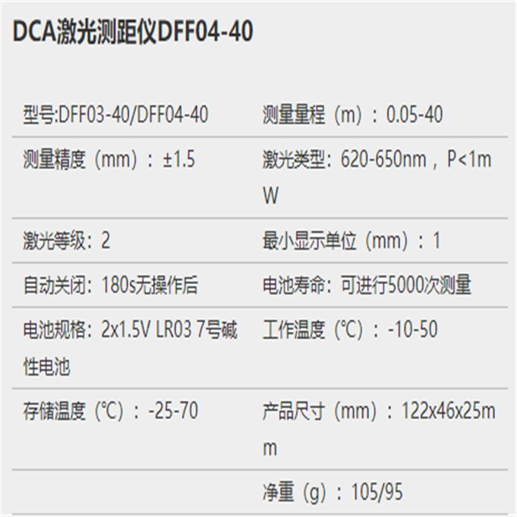 激光測距儀基本參數圖