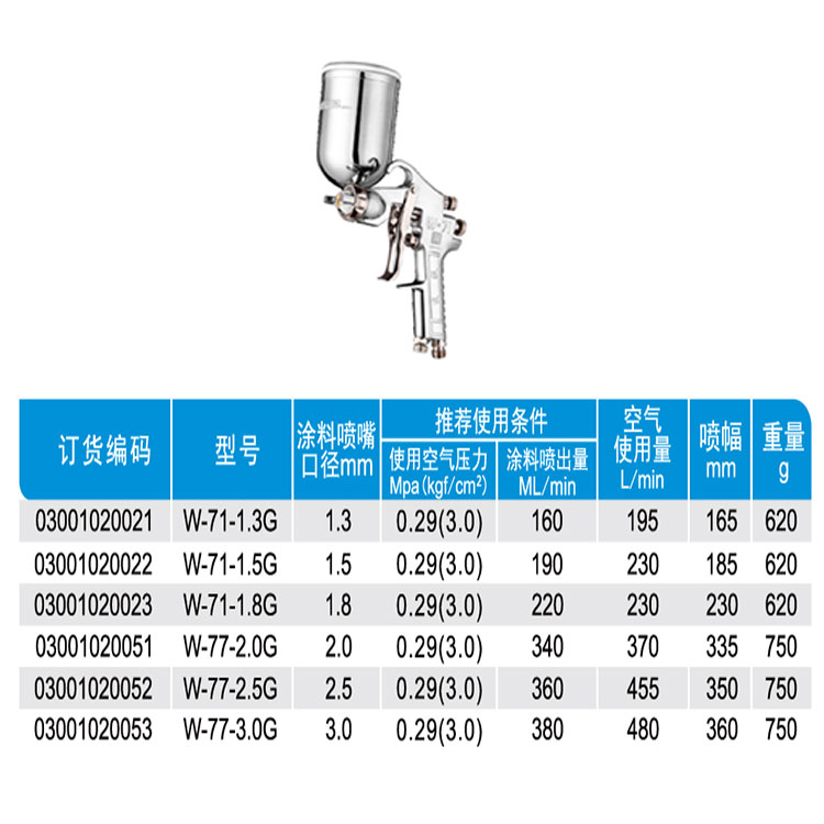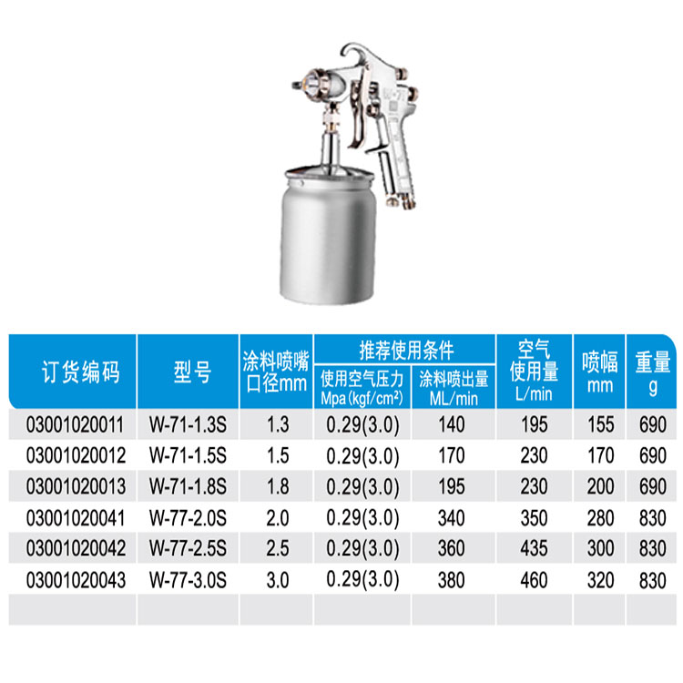 - 型號名稱 W-71-1.3S重力式