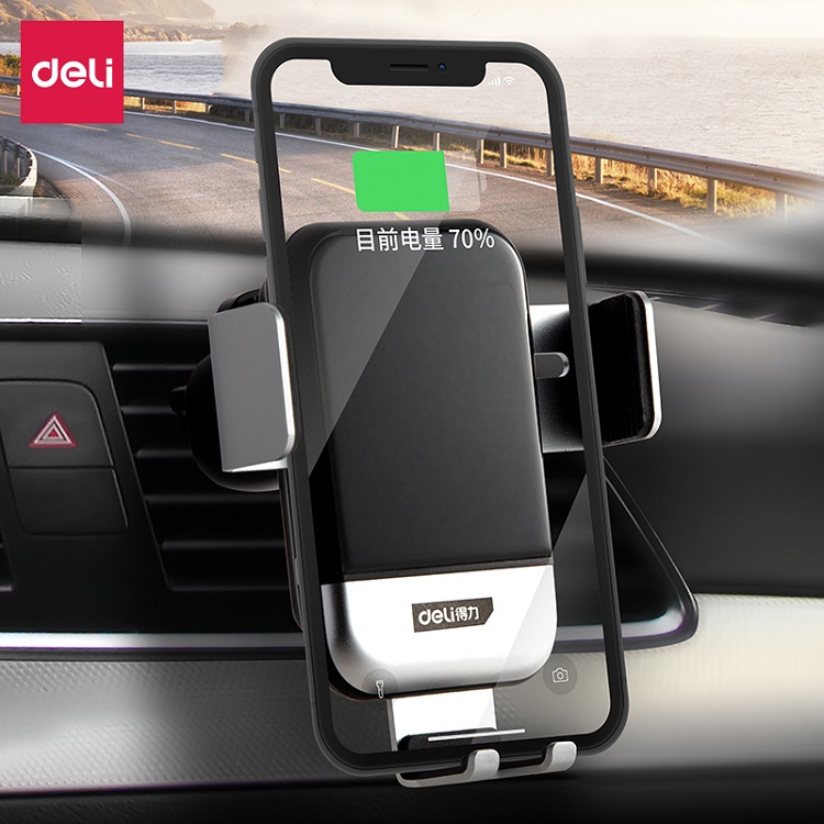 得力感應式車載無線充電器手機支架快充無線車充卡扣式支架
