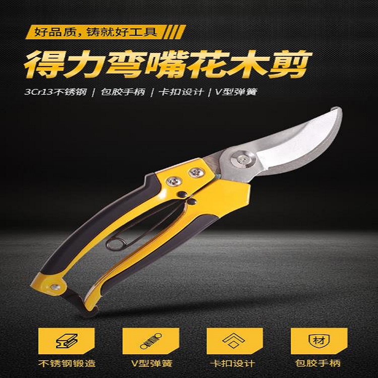 得力彎嘴花木剪適用于修剪果枝,盆景,園林及其他剪切。