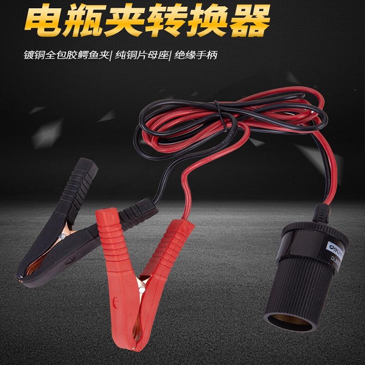 得力工具電瓶夾子轉(zhuǎn)點(diǎn)煙器孔蓄汽車電池夾連接線轉(zhuǎn)換器電瓶純銅線