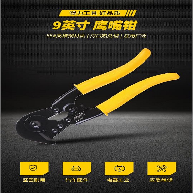 得力鷹嘴鉗55#高碳鋼精工鍛造,刃口熱處理,硬度達到56-60HRC