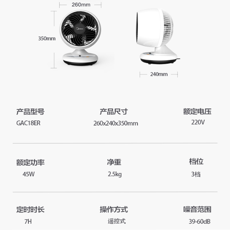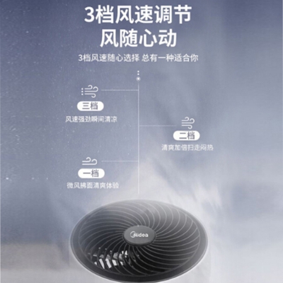 美的(Midea)五葉風扇渦輪加速風道,瞬間空氣流動。