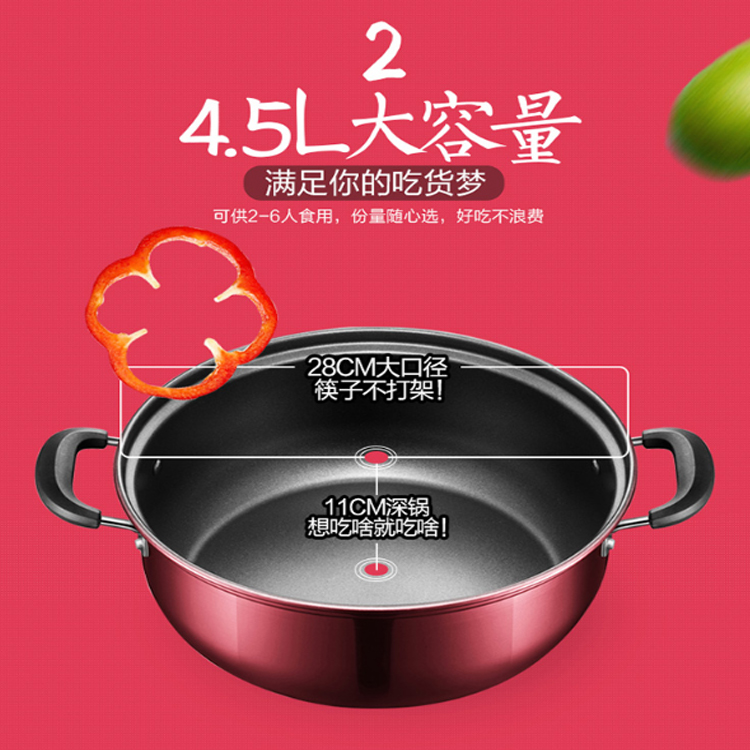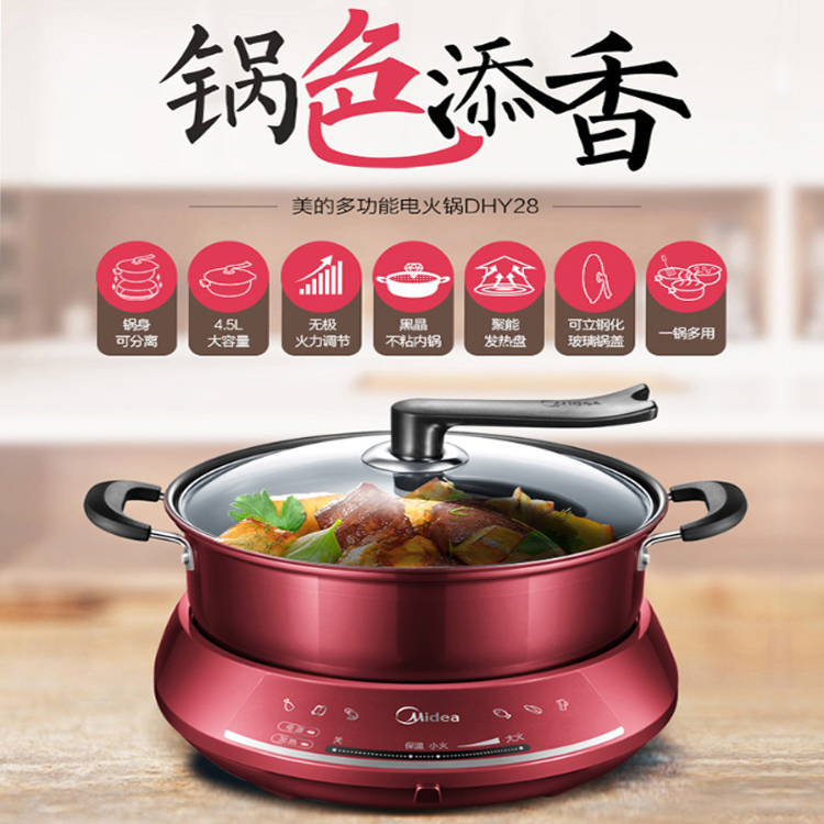 美的(Midea)電火鍋鍋體和底座采用分離式設計,方便端拿,易清洗。