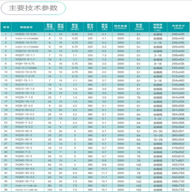新界污水污物潛水電泵參數圖