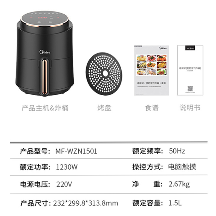 美的家用空氣炸鍋1200w大火力,高速空氣循環(huán)脫脂。