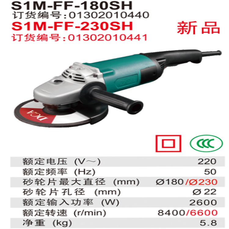 DCA角向磨光機S1M-FF-180SH/S1M-FF-230SH高品質銅線電機