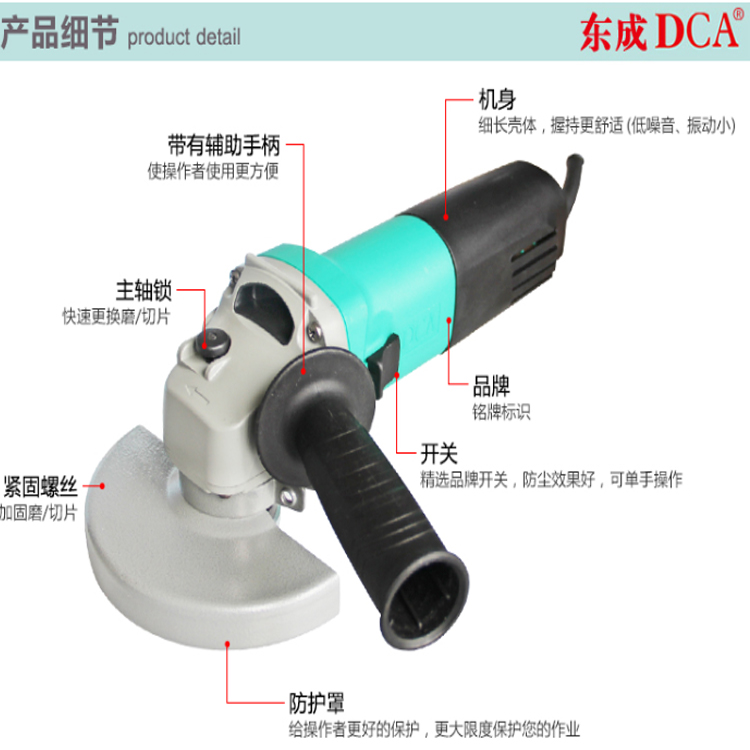 DCA角向磨光機S1M-FF-230A 金屬防護罩高強度防護罩使用更加安全。