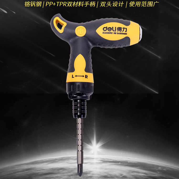 得力T型棘輪伸縮兩用螺絲刀批迷你十字一字雙頭起子改錐五金工具