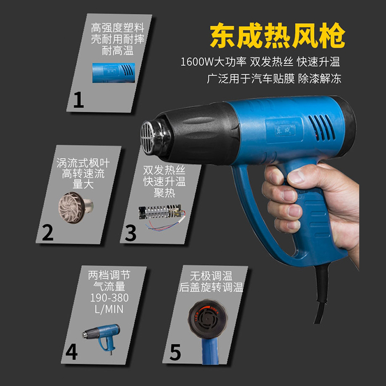 東成熱風槍DQB02-1600塑料焊槍可調溫電烤槍汽車貼膜收縮膜
