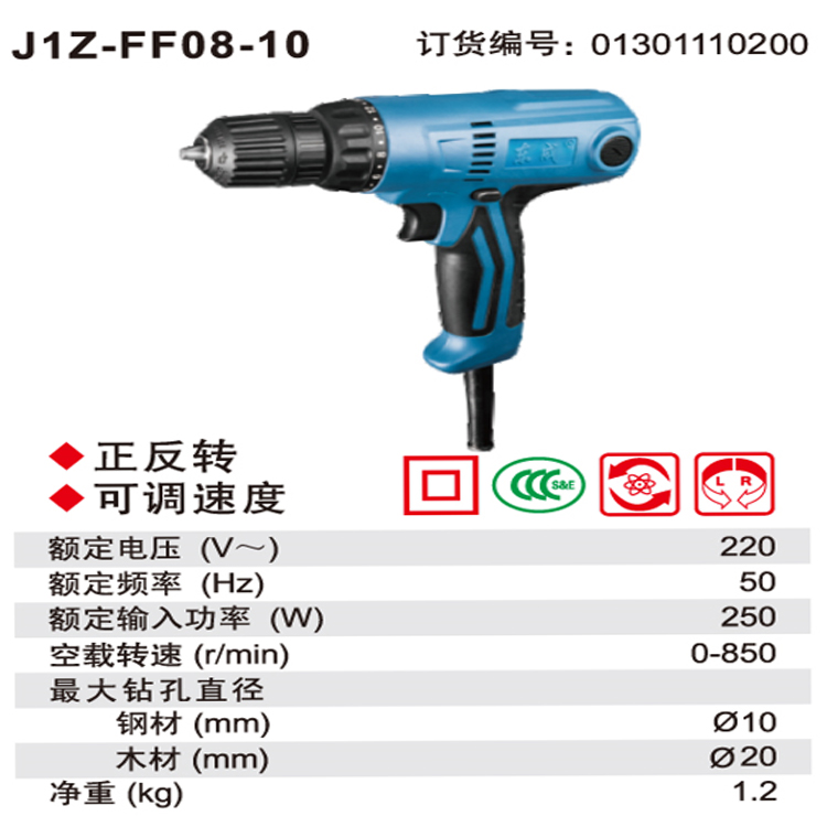 東成手電鉆J1Z-FF08-10鉆頭范圍3-16毫米