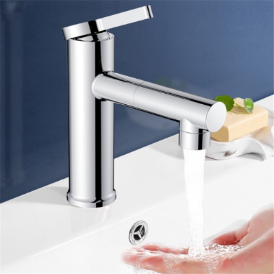 多功能抽拉式洗臉盆臺盆精銅冷熱水單孔拉伸水龍頭 升級款抽拉龍頭