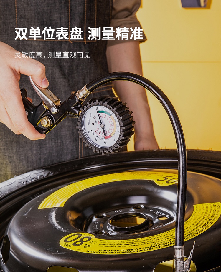 輪胎打氣槍具有雙單位表盤,測量精準(zhǔn)