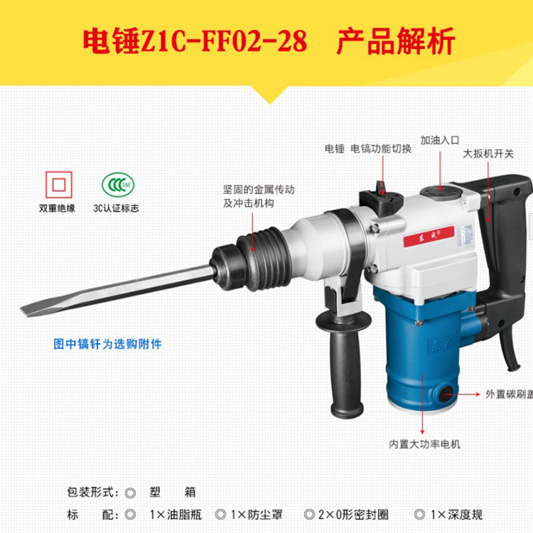 東成電錘Z1C-FF02-28錘鎬鉆孔力大高效 效率高,孔徑大,鉆進深度長
