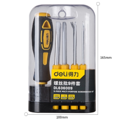 得力十字螺絲刀套裝螺絲批頭帶磁性,塑盒包裝,方便收納。