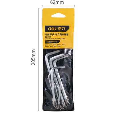 得力 吊環(huán)平頭內(nèi)六角8件套鉻釩鋼內(nèi)六角螺絲扳手