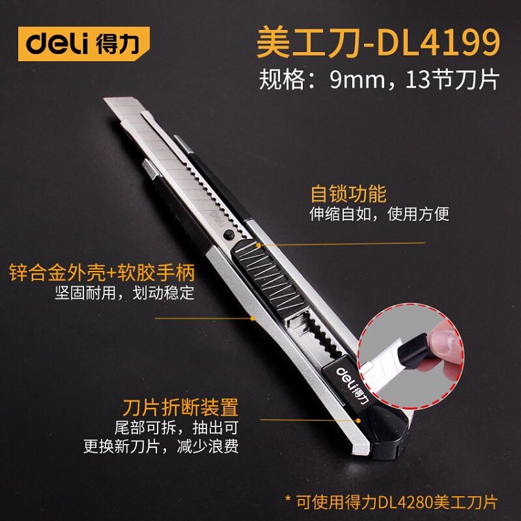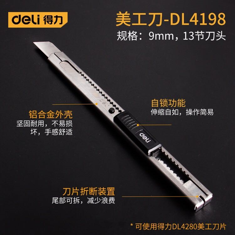 得力/ 鋅合金軟膠自鎖小號美工刀裁紙刀13刀頭(9mm) DL4199 DL4198