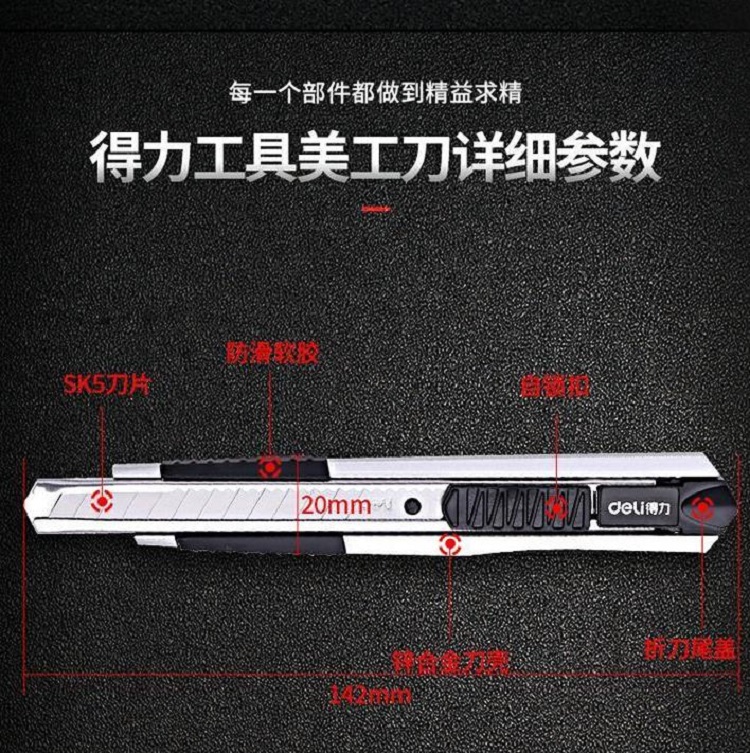 小號美工刀采用SK5合金鋼刀片,雙層刀鋒設計
