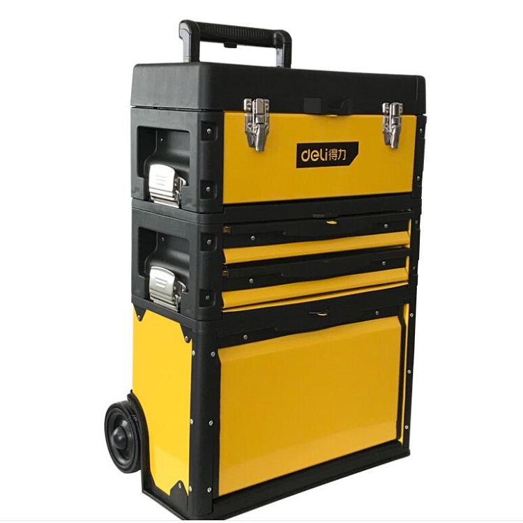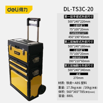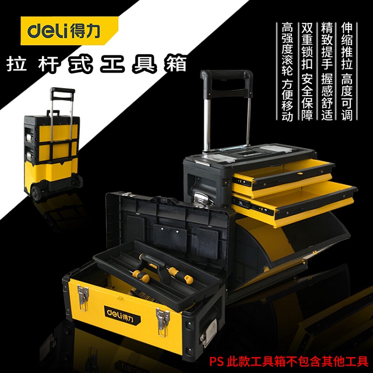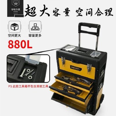 得力拉桿式工具箱帶輪子三層工具箱疊加箱子多功能安裝維修設備箱