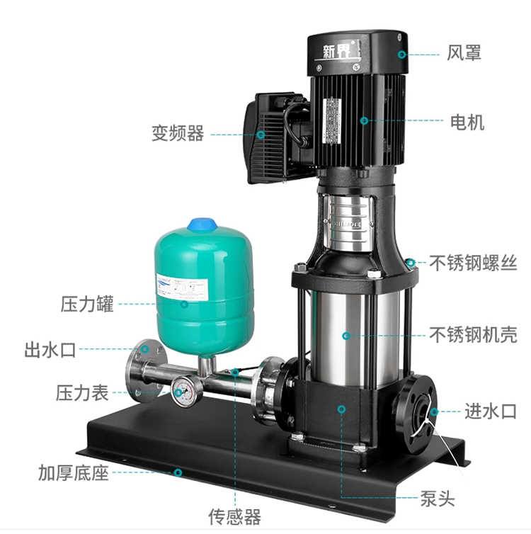 大元立式恒壓變頻泵過流部件為304不銹鋼,冷熱水通用,耐腐蝕,清潔衛生,應用