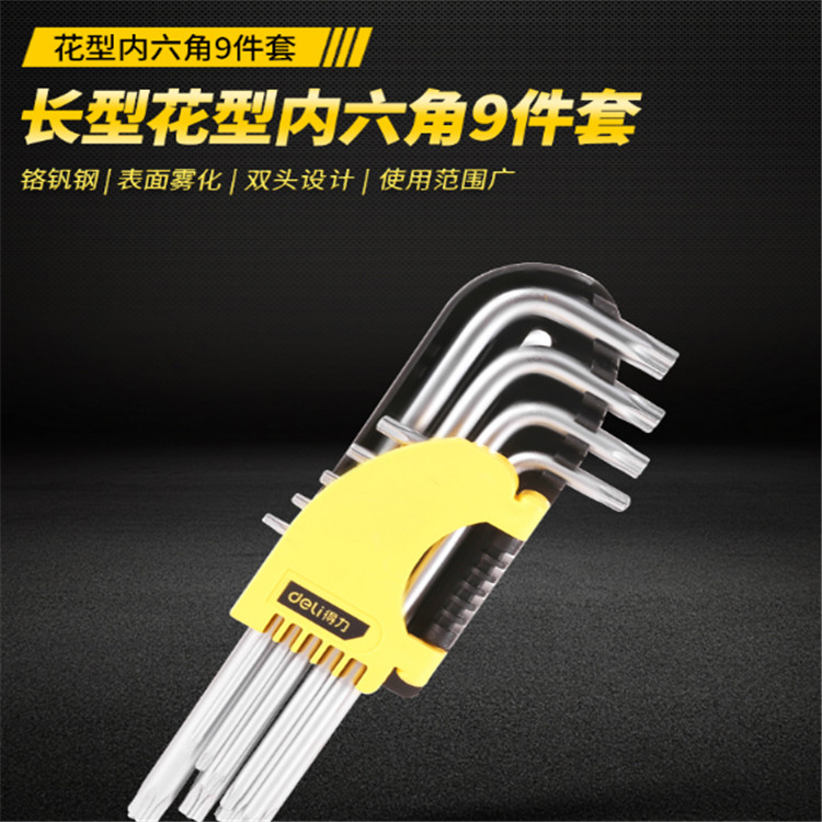 得力長型中孔花型內六角9件套表面霧化處理,有效防止反光。