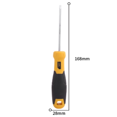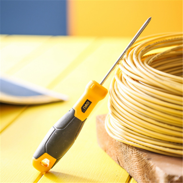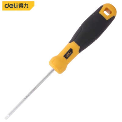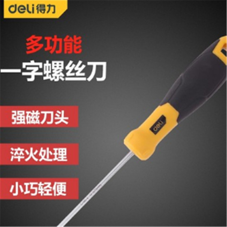 得力一字螺絲批刀桿為鉻釩鋼整體淬火而成,硬度高,韌性好,批頭帶強(qiáng)磁。