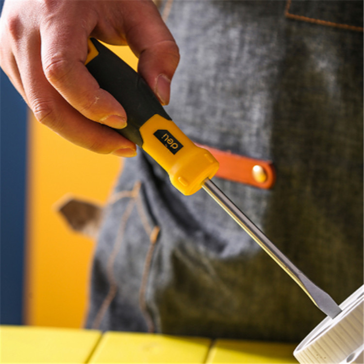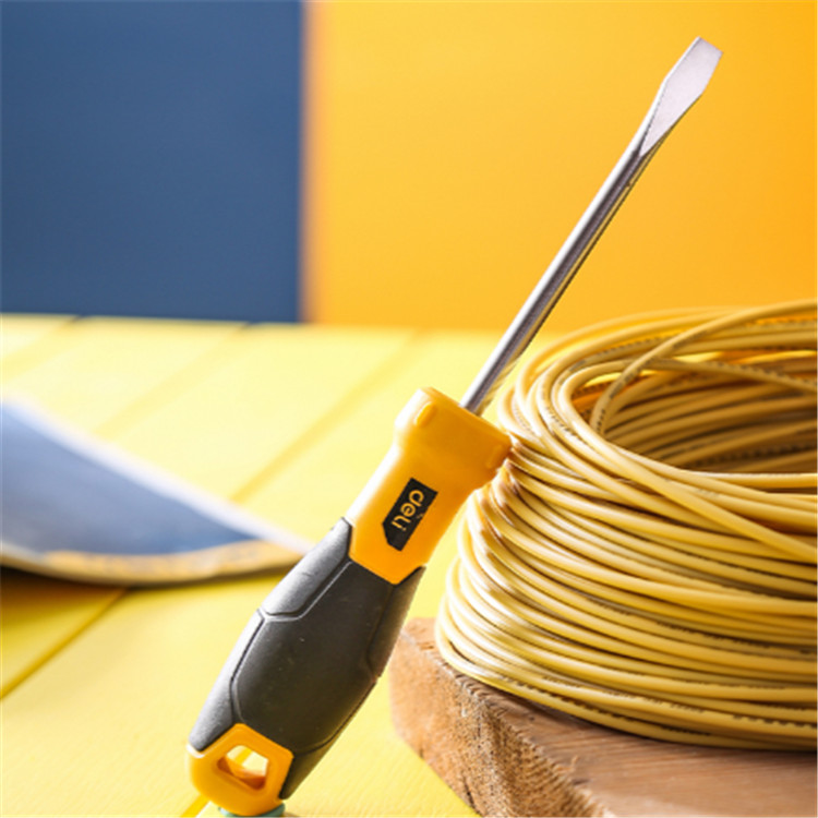 得力 一字螺絲刀批橡塑雙材料手柄,表面有精致花紋,握柄前端防轉(zhuǎn)凸點(diǎn)設(shè)計(jì)。