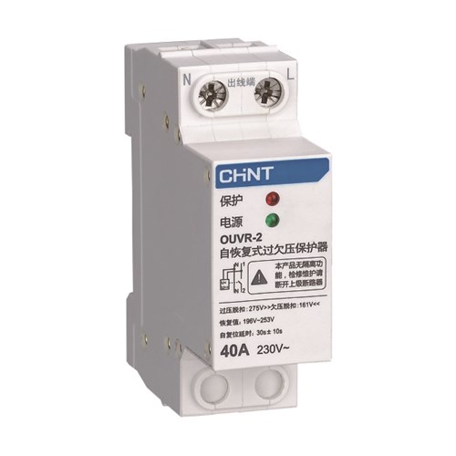 正泰OUVR-2自恢復式過欠壓保護器是新型智能保護電器,該產品采用模數化標準設計, 當供電線路出現過電壓,欠電壓時,保護器能在持續高壓沖擊下迅速、安全地切斷 電路,避免異常電壓送入終端電器造成事故的發生。