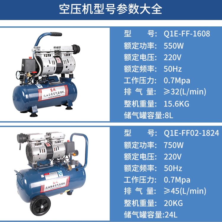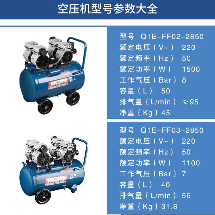 無(wú)油靜音空壓機(jī)參數(shù)大全