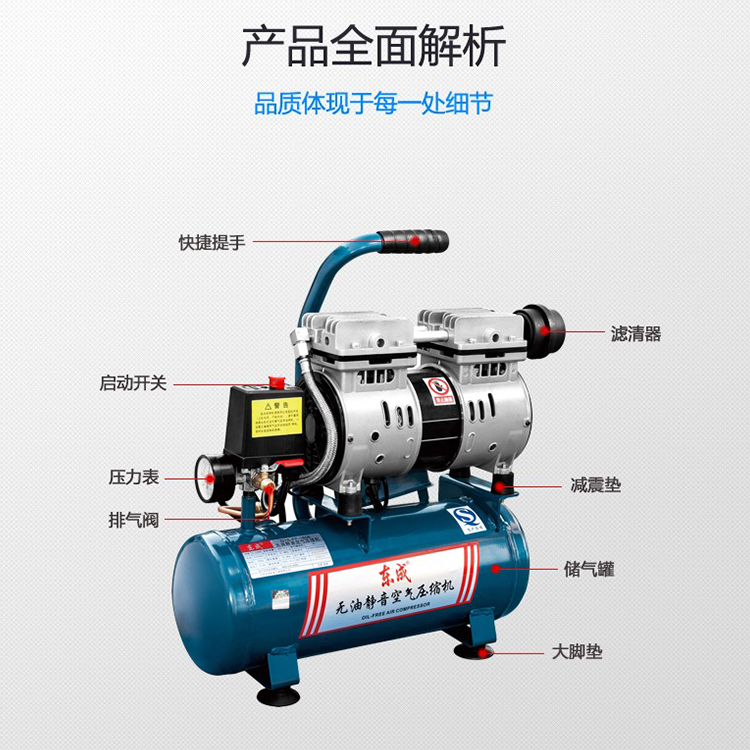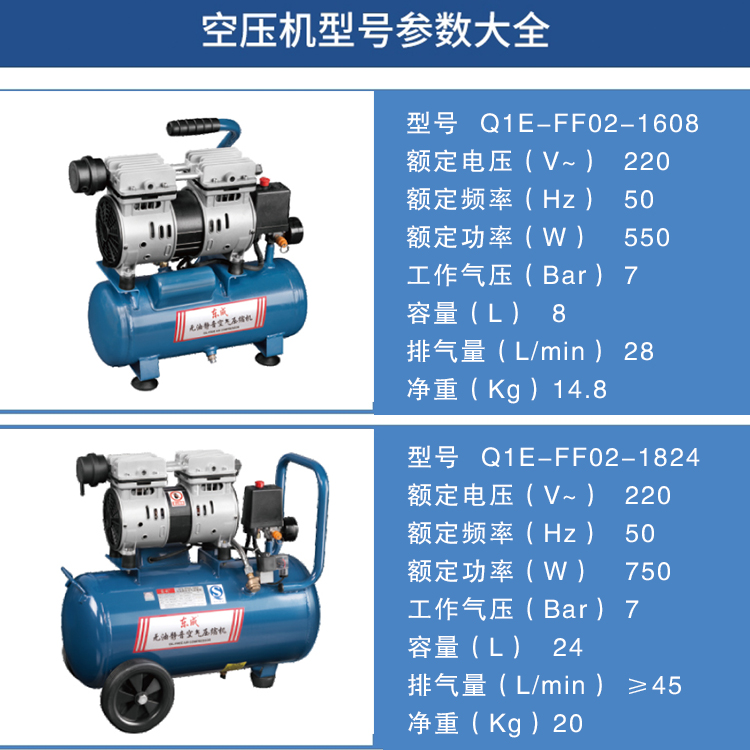 東成無(wú)油靜音空壓機(jī)FF02-1824充氣泵靜音空氣壓縮機(jī)木工家用小型氣泵