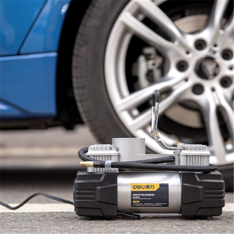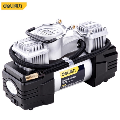 得力工具輪胎充氣泵(銀)汽車用雙缸便攜式小轎車大功率汽車打氣泵