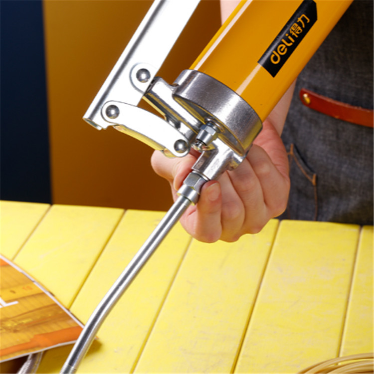 得力黃油槍手動單雙缸重型手壓式高壓小型槍頭采用國標鋁合金,耐壓性能提高。