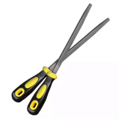 得力(deli)中齒三角銼刀6"8"10"12"雙色橡塑柄打磨銼工具銼