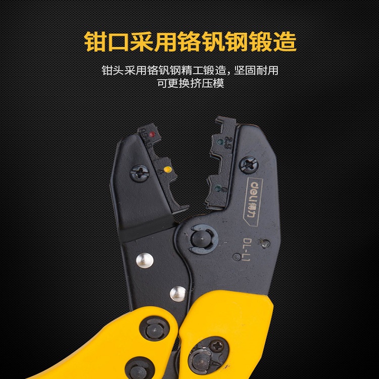 壓線鉗鉗頭采用鉻釩鋼精工鍛造,堅固耐用可更換擠壓模